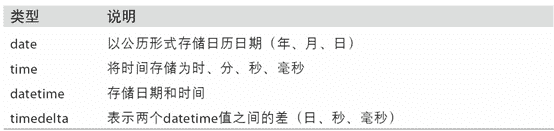 datetime模块中的数据类型参见表 10-1。虽然本章主要讲的是 pandas 数据类型和高级时间序列处理,但你肯定会在 Python 的其他地方遇到有关datetime的数据类型。