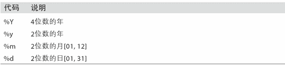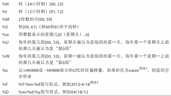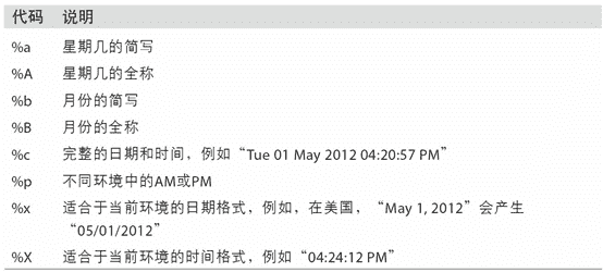 表 11-2 datetime格式定义(兼容 ISO C89)